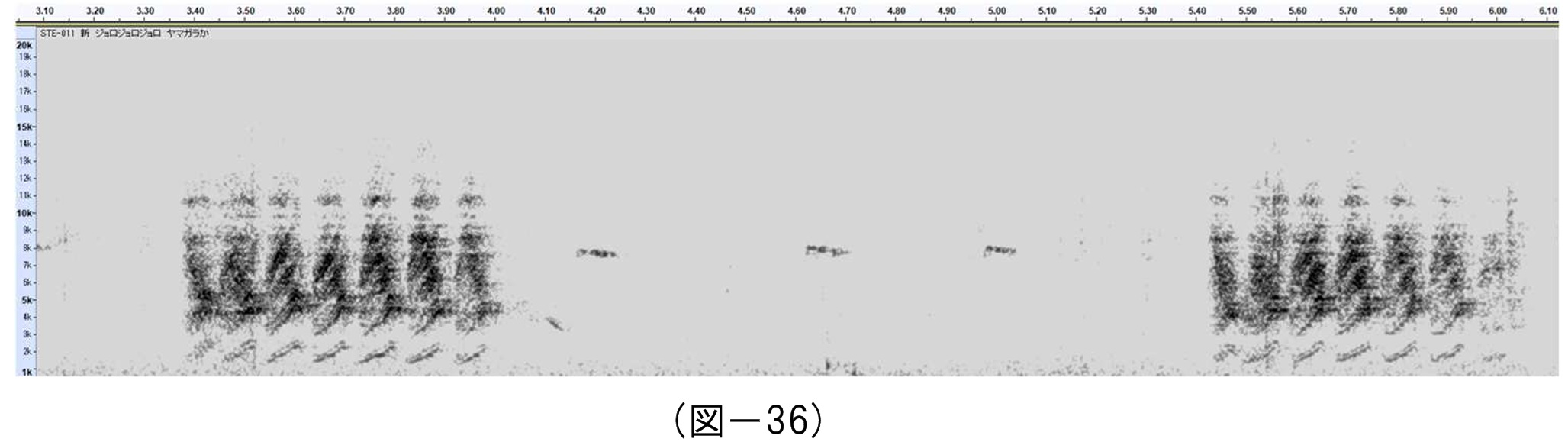 P7とP8については同じ並びの場合はP78αとして同一要素音扱いにした。・/G/*nについて、その最も強度の強い音程の違いや連打の速さ、数、音域の狭い/G3/を先頭につけるか否かによってそれぞれの意味が違う可能性もある。先行研究で/G/の連打がカラスだといわれているが公表されている音声を分析したところ別の要素音が加わりしかもリズムがあることが分かった。